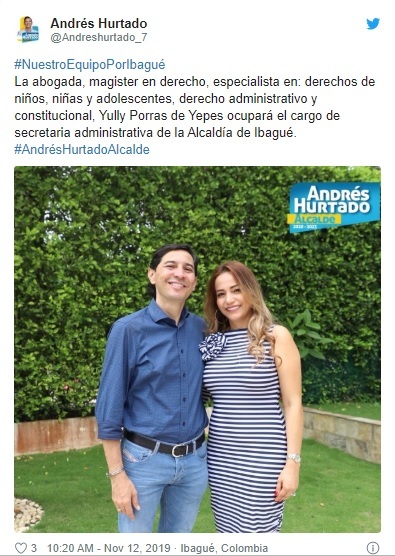 Con el nombramiento de Yully Porras, el alcalde electo Hurtado completa seis designaciones en el gabinete que lo acompañará en su gobierno a partir del próximo primero de enero de 2020.