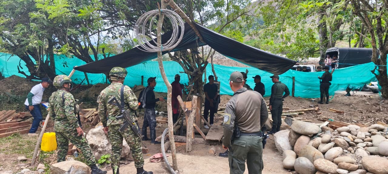 "En ese punto, al verificar los permisos, se evidenció que no contaban con los mismos, por lo que se procedió al cerramiento de esta estructura ilegal, de donde se extraían mensualmente 600 gramos de oro, con un valor comercial de 185 millones de pesos", explicó el mayor César Humberto González, comandante del Batallón de Despliegue Rápido N.º 13.