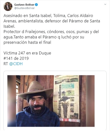 Y por cuidar el páramo como si fuera su propia vida lo asesinaron. Hace dos meses Carlos Aldairo llamó a una amiga para informarle que lo habían amenazado y que temía por su vida. Una tala de bosque a la que él se oponía fue el detonante. Un grupo de hombres llegó hasta su finca para decirle que se tenía que ir o de lo contrario lo mataban. Y este viernes cumplieron con la amenaza.