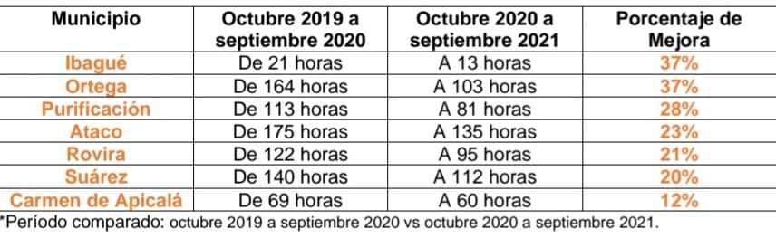 Celsia afirma que es un compromiso que los tolimenses sientan mejoría en su vida diaria con la disminución de las interrupciones del servicio de energía; los resultados se están percibiendo y los indicadores muestran importantes avances. Agrega la emprensa que “Aunque la compañía es consciente de que aún falta terreno, ya hay mejoras significativas” A la duración de las interrupciones del servicio de energía se le conoce como SAIDI.