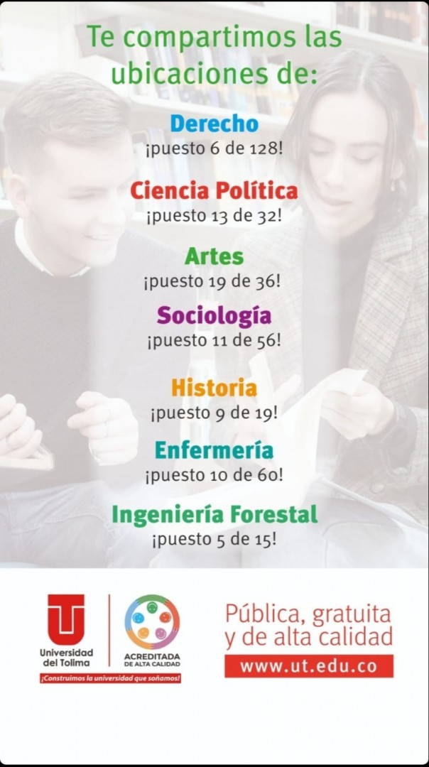 Si bien es cierto, históricamente, las universidades de Bogotá y Medellín como la Universidad Nacional de Colombia, Universidad de Antioquia o Pontificia Universidad Javeriana, han ocupado los primeros puestos en excelencia académica, no significa que las universidades de ciudades intermedias como Ibagué, no cuenten con un pensum sobresaliente en diferentes programas académicos.