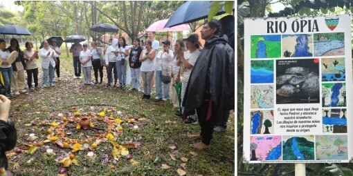 Allí estuvimos, honrando la presencia del río y dejando además testimonio de lo adelantado en su reconocimiento, desde el comité de educación ambiental del Consejo del POMCA, encabezado por Esmeralda Becerra; un hablador que contiene el trabajo de los niños del municipio de Piedras, donde el Opia se une al río Magdalena y cuyo alcalde John Pinzón, también vino a acompañarnos, confirmando que el agua nos une y no conoce de divisiones político-administrativas.