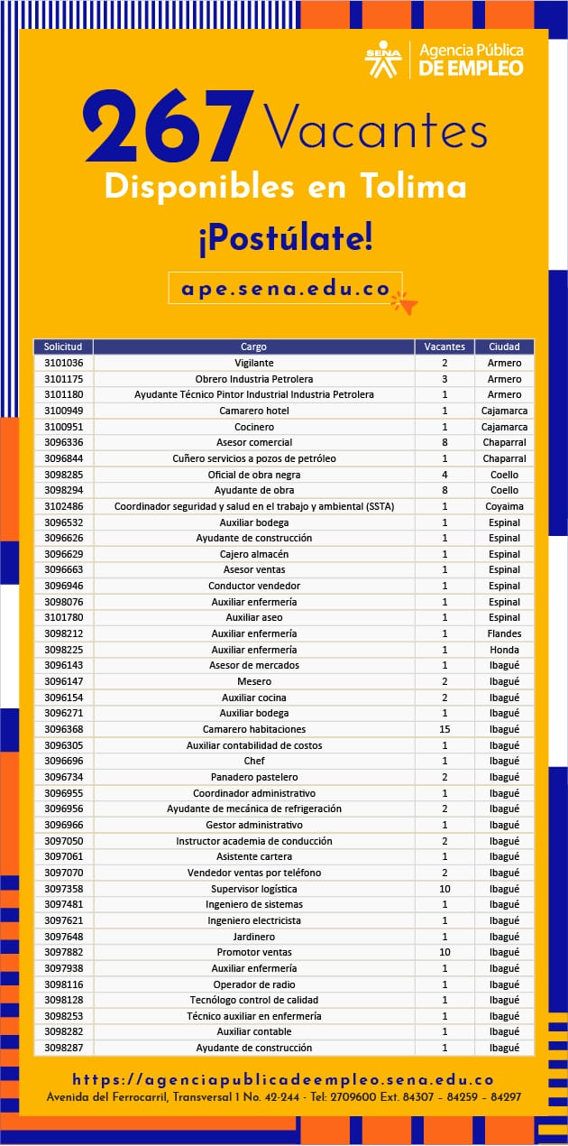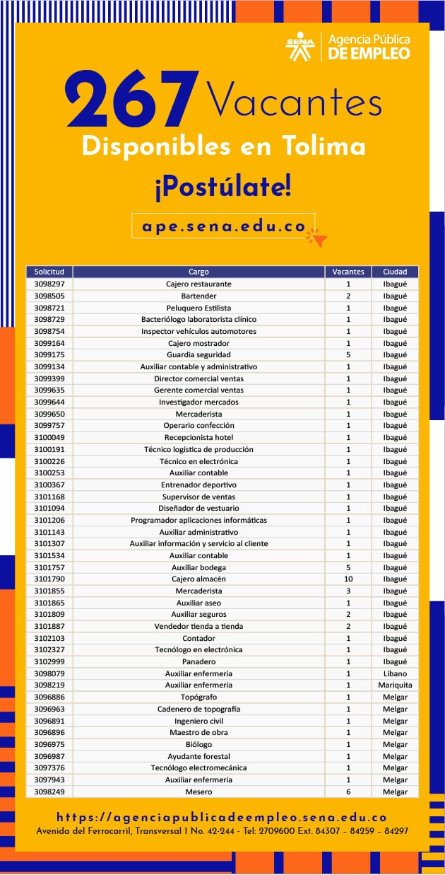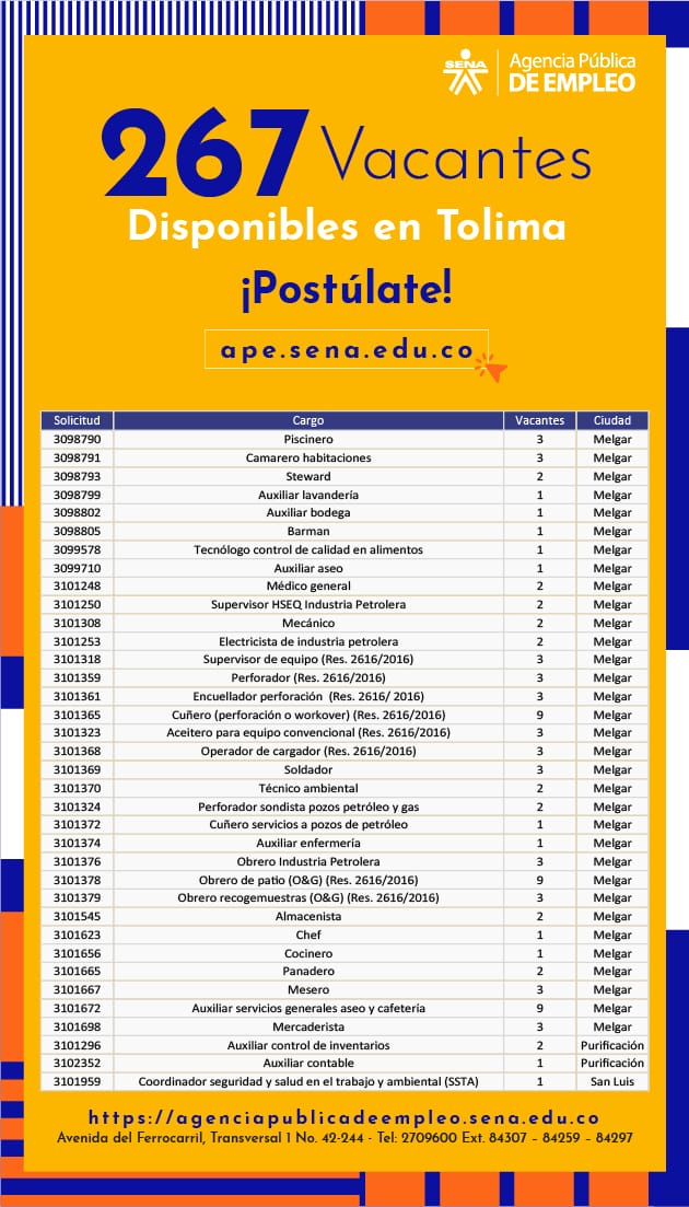 A través de un listado la entidad ofrece las vacantes para que se postulen las personas interesadas en los empleos de su interés y que cumplan con el perfil requerido. Estos son los detalles: