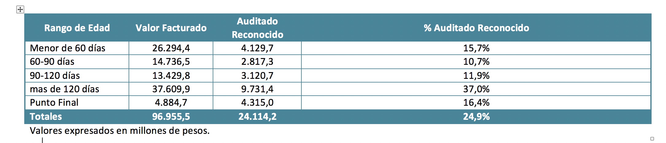 En el proceso de saneamiento se involucraron pagos por anticipado a las EPS, estos reconocimientos y pagos deberían servir para aliviar la cartera de hospitales e IPS, para que estas pagaran sus deudas laborales o a sus proveedores lo que, sin duda, contribuiría a una mejor atención en salud a los colombianos.