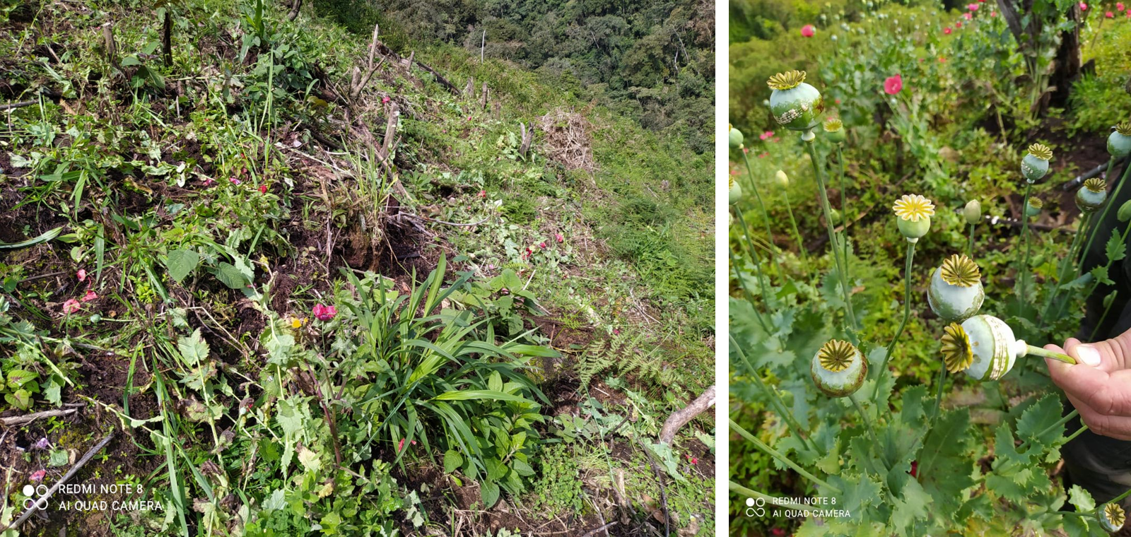 Todo indica que estos cultivos pertenecerían al GAO-r Comando Conjunto central Adán Izquierdo, de la disidencias de las Farc, donde en el primer lote había cultivadas 8.522 plantas, en el segundo lote 3.551 plantas y en el tercer lote se erradicaron 12.800 plantas de Amapola.