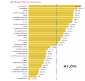 En 2018, Cortolima arranco en un 29,14%, en 2019 subió a un 100% y ya para el 2020 su baja la gestión de recursos a un 38,76% donde hasta el momento no se ha visto la gestión con el Gobierno Nacional y organismos internacionales.