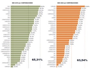 b.- En el año 2017 Cortolima inicia con un IEDI de 82%, luego en 2018 registra un 44,2%, aumenta para 2019 al 50,10% y termina en 2020 con el peor desempeño del trienio con un 31,33%, lo que deduce que Cortolima en 2020 retrocedió 3 años dejándola en nivel “Crítico” tal como lo señala la escala de medición.