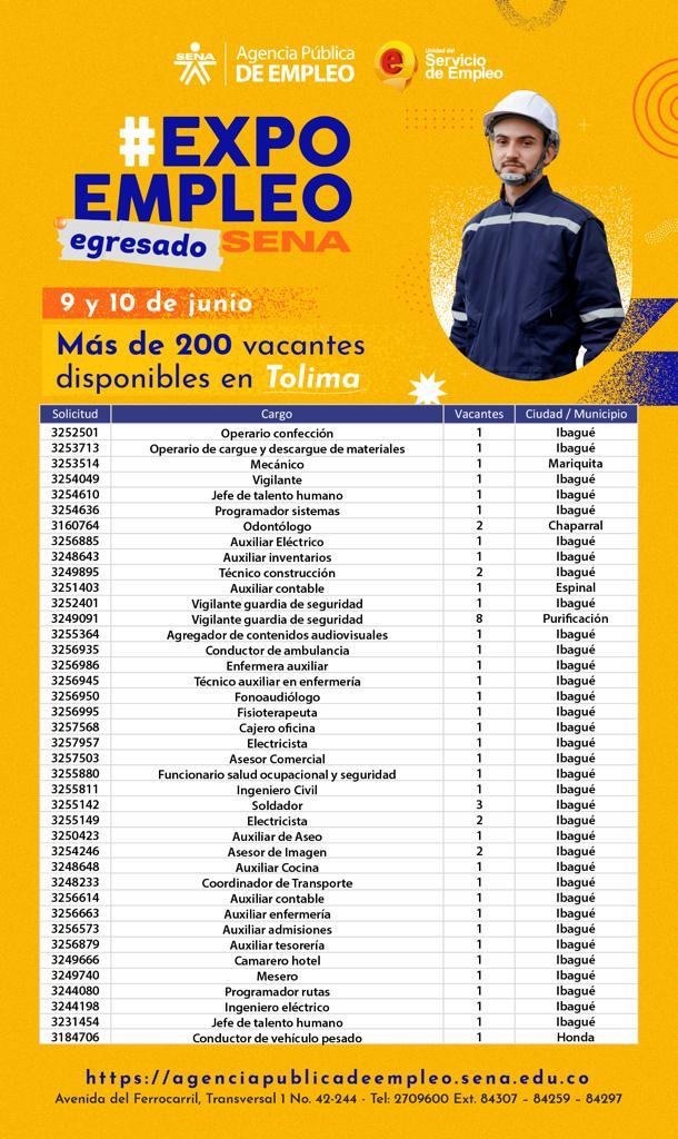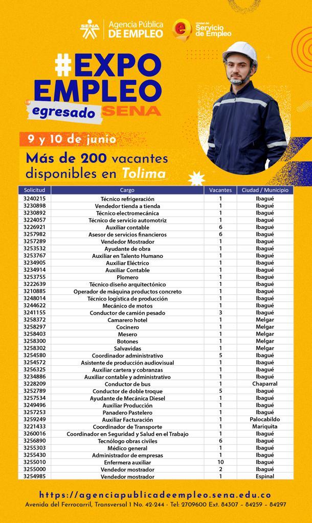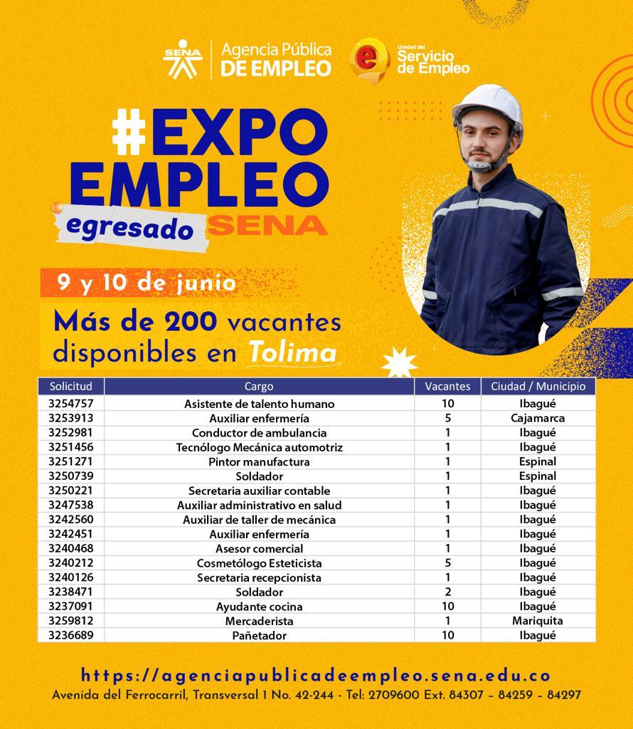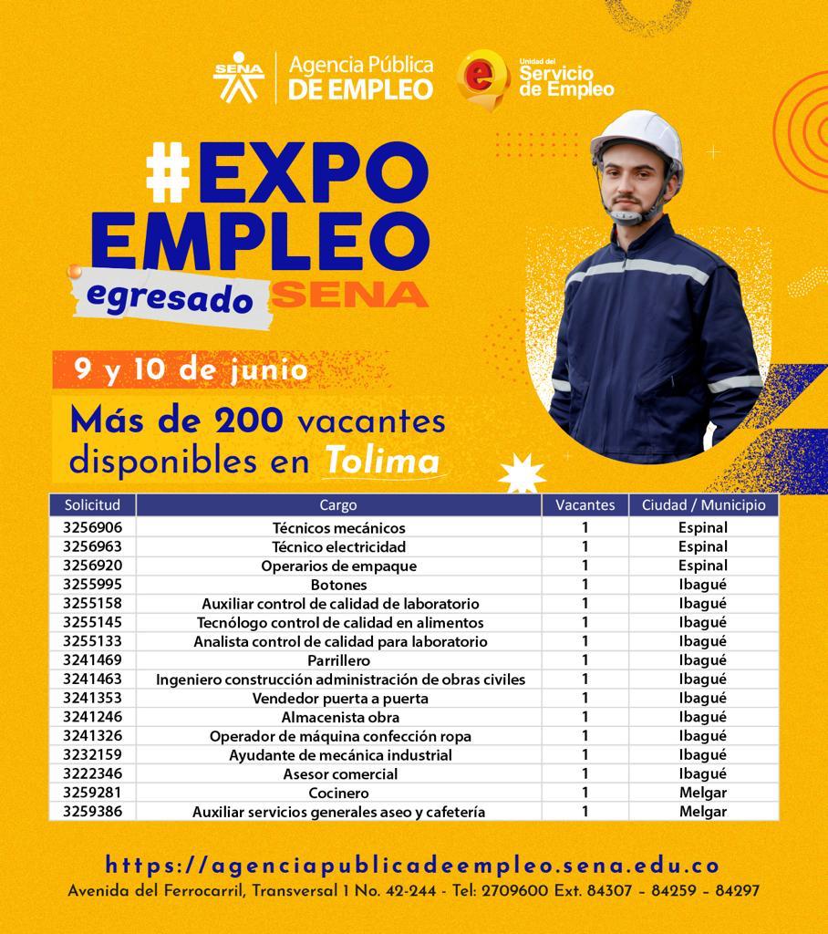 Todas los detalles de estas y más vacantes las pueden encontrar en www.expoempleoegresadossena.com