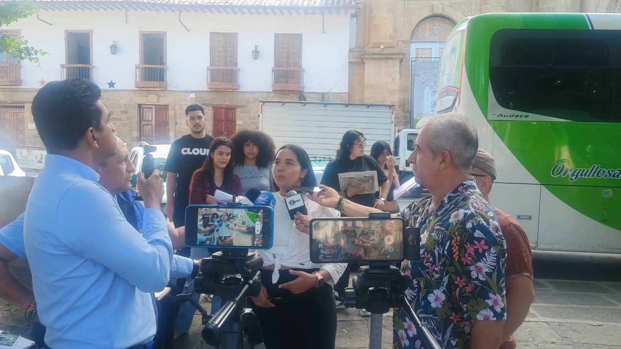 Estudiante del Programa de Arquitectura de la Universidad del Tolima entrevistada por medios periodísticos de Socorro, Santander. Fuente: Eduardo Peñaloza K