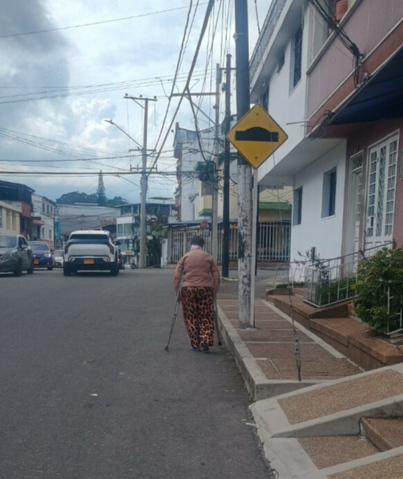 Habitante de Ibagué caminando en muletas por la calzada. Carrera 4i con calle 38, Ibagué. Fuente: Eduardo Peñaloza K