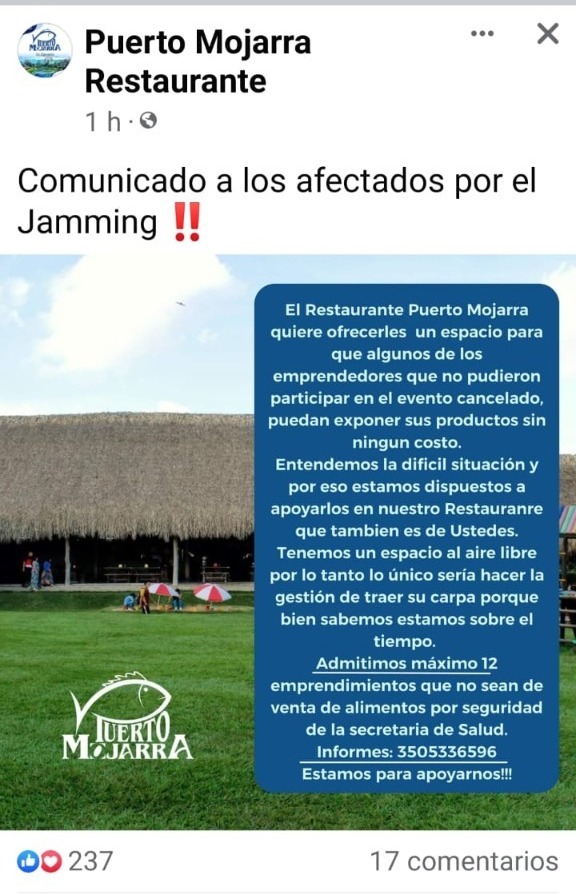 Lazos de solidaridad por los emprendedores afectados del Jamming