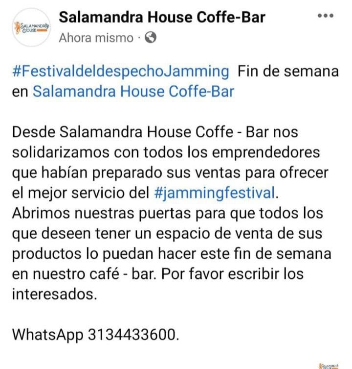 Ante la difícil situación, varias empresas del sector privado ofrecieron sus instalaciones a los emprendedores y artesanos que se vieron afectados por la suspensión del Jamming Festival.