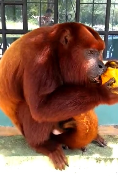 Mono aullador entra en 'confianza' con habitantes de Piedra