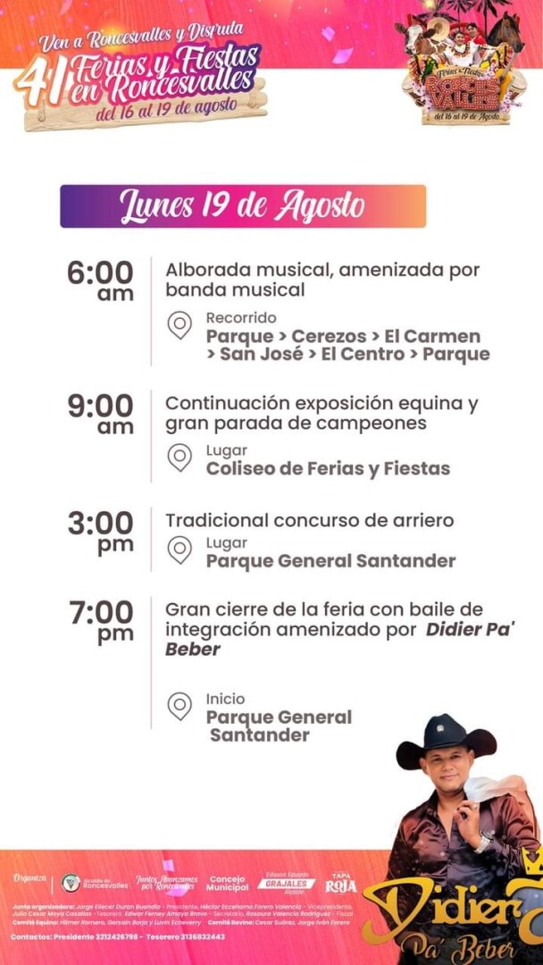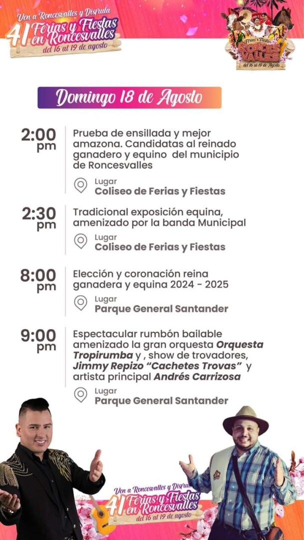 Las 41° Ferias y Fiestas de Roncesvalles son una ocasión perfecta para disfrutar de una experiencia única en el corazón del Tolima, donde la tradición y la modernidad se unen para ofrecer a todos los visitantes una celebración inolvidable.
