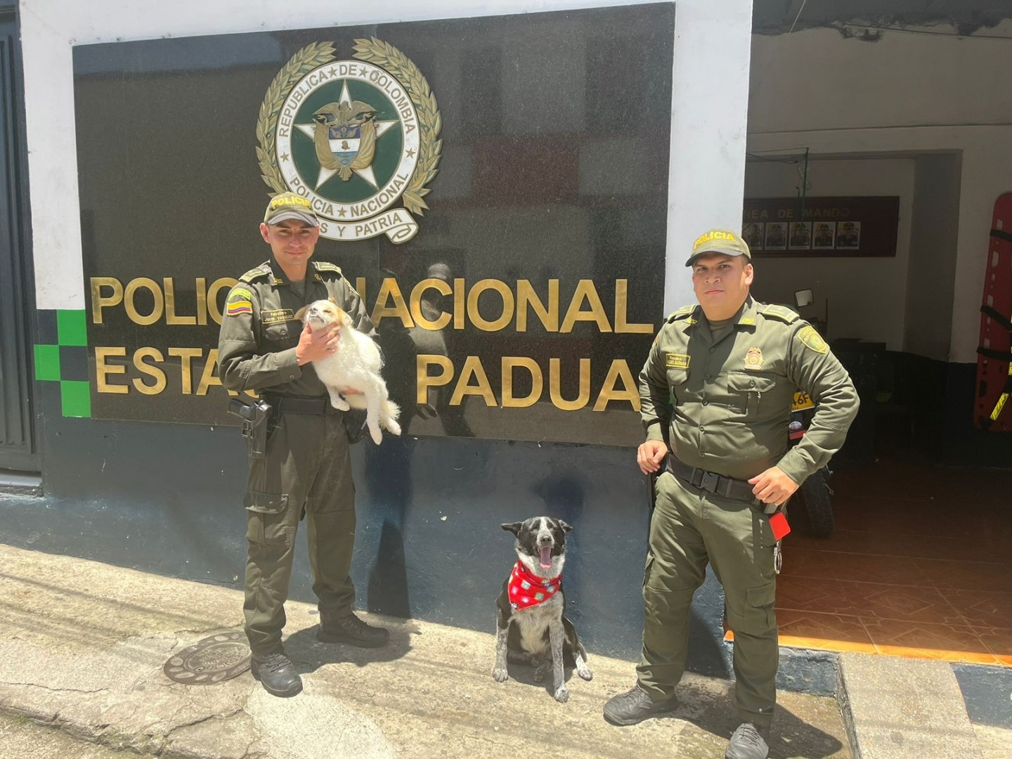 La estación de la Policía Nacional en Padua se convirtió en el hogar para los perritos que habitaban las calles de este corregimiento ubicado en el norte del Tolima. Manchas, Risas y Máximo ahora son los fieles compañeros de los uniformados que guardan la seguridad y convivencia en la zona rural de Herveo.