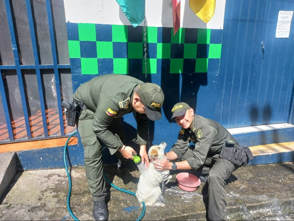 "Hace aproximadamente tres años acogimos a estos tres peluditos, que lastimosamente estaban sufriendo maltrato animal. Los acogimos en nuestra subestación y brindándoles amor y cariño para mejorarles su calidad de vida. Les damos todo lo que un día les faltó", manifestó el patrullero Jairo Andrés Guzmán.
