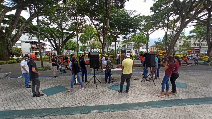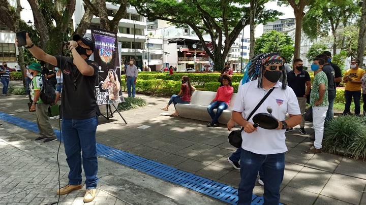 Camilo Olivar es un dj de Ibagué, que elevó su voz de protesta de manera vehemente durante el plantón de hoy. Él sostiene que los auxilios han sido insuficientes, pues en siete meses solo les han entregado dos mercados.