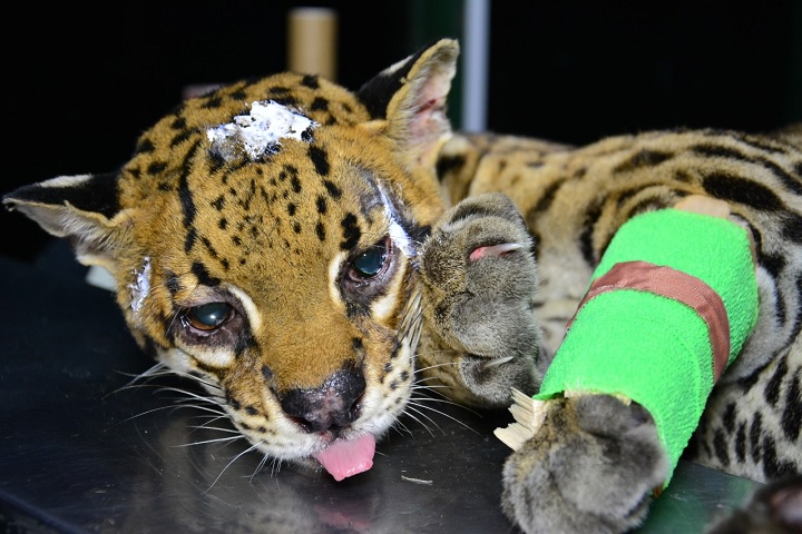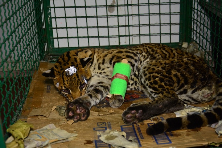 Con fracturas múltiples en radio y cúbito de miembro anterior izquierdo fue rescatada una ocelote (Leopardus pardalis), en el municipio de Chaparral, luego de ser encontrado por personal del Ejército Nacional en la finca Casa Castañal, de la vereda San Miguel.