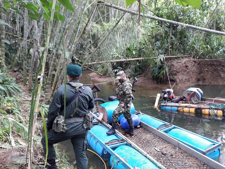 Durante el operativo que se desarrolló en la vereda Las Marías, además de los cuatro capturados y la incautación de maquinaria, se evidenció el daño ambiental ocasionado a la cuenca del río Medina como consecuencia de la explotación ilegal de oro.
