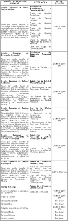 En las instalaciones de la sede central de la Corporación Autónoma Regional del Tolima (Cortolima), se celebró la primera reunión en la que se entregó la información general de la naturaleza jurídica y antecedentes de la autoridad ambiental del departamento y se acordaron las fechas, metodología y mecanismo de entrega y recibo de información con el equipo de trabajo.