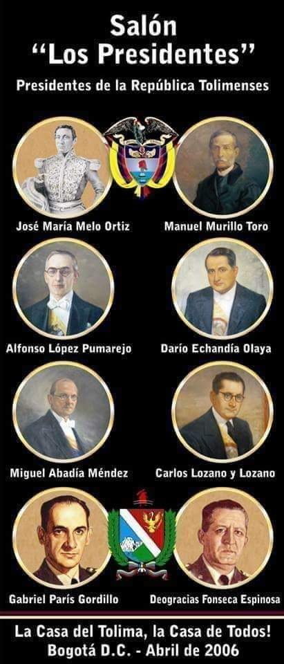 Hoy, y para conmemorar el Día del Tolima, quiero hacer un recorrido histórico y cronológico de todos los Jefes de Estado, oriundos del Tolima, que manejaron los destinos del país y sus ejecutorias.