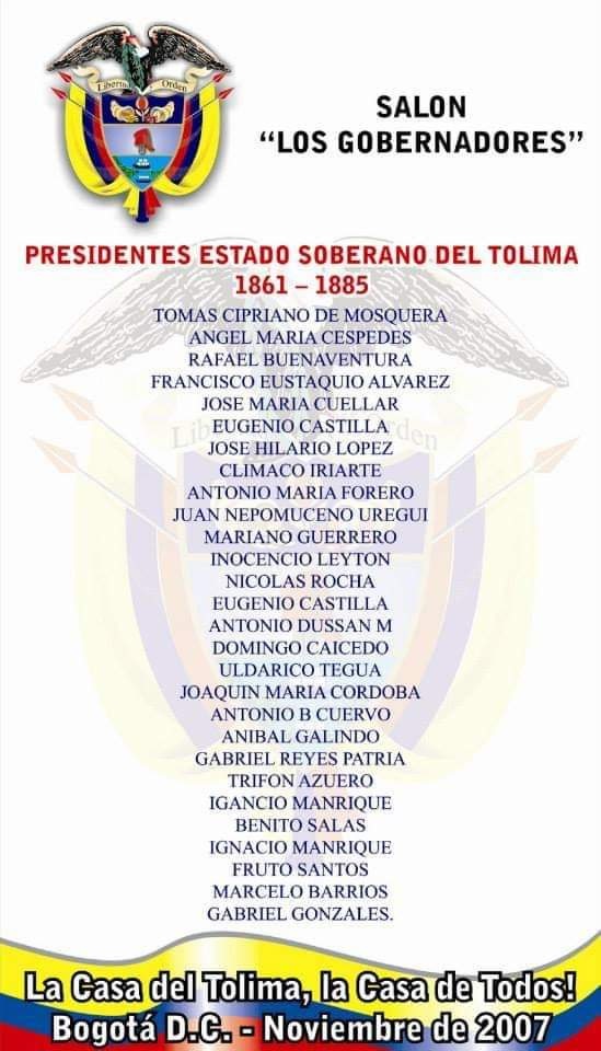 Es importante mantener vivos y rescatar los valores históricos y culturales de nuestro territorio tolimense, el 12 de abril del año 1861, se creó el Estado Soberano del Tolima, y su primer Presidente fué Tomás Cipriano de Mosquera.