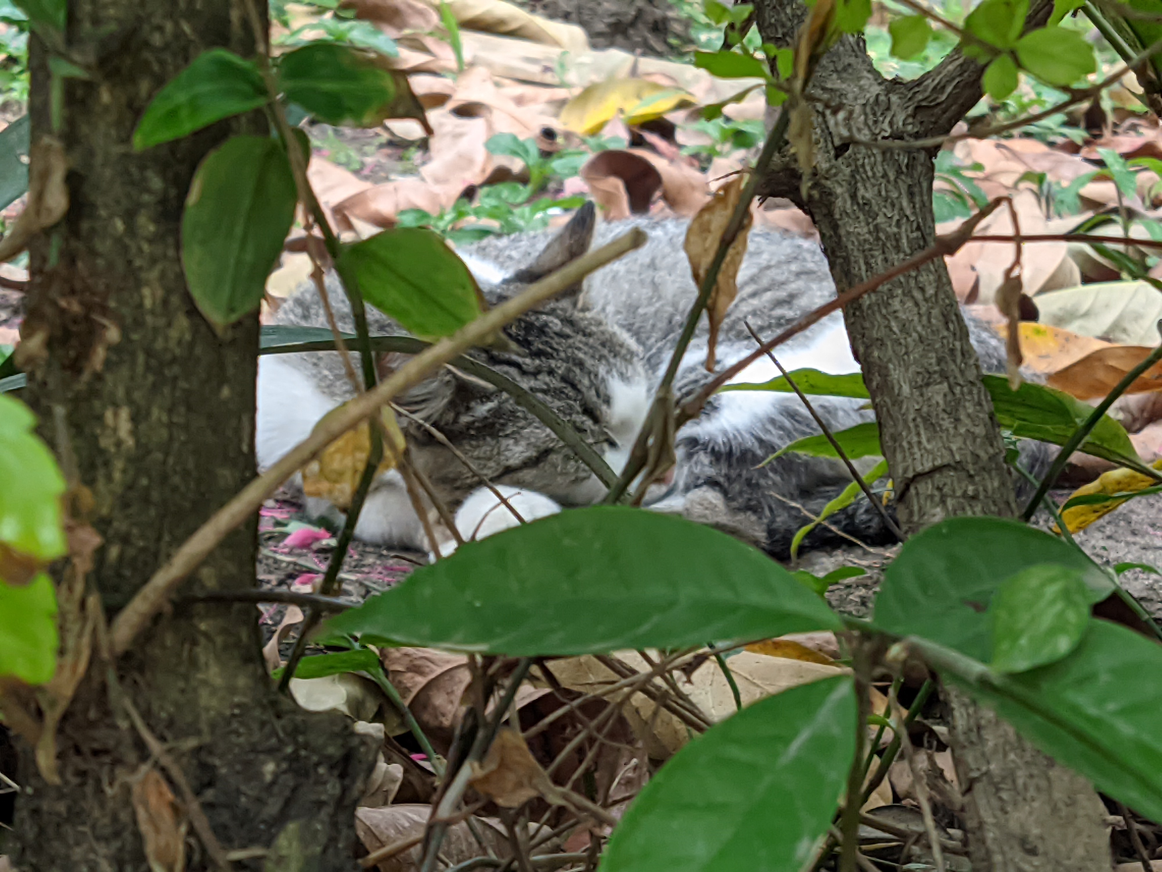 Existen algunas zonas verdes donde los vecinos plantan alguna que otra cosa o recogen una de tantas pomarrosas que caen diariamente de los árboles. Estas zonas signfican para los gatos, un lugar en donde satisfacer todas sus necesidades: saltar, jugar, cazar, descansar e incluso defecar. Allí se esconden de sus dueños, que en la noche silban y silban rogando para que vuelvan a casa.