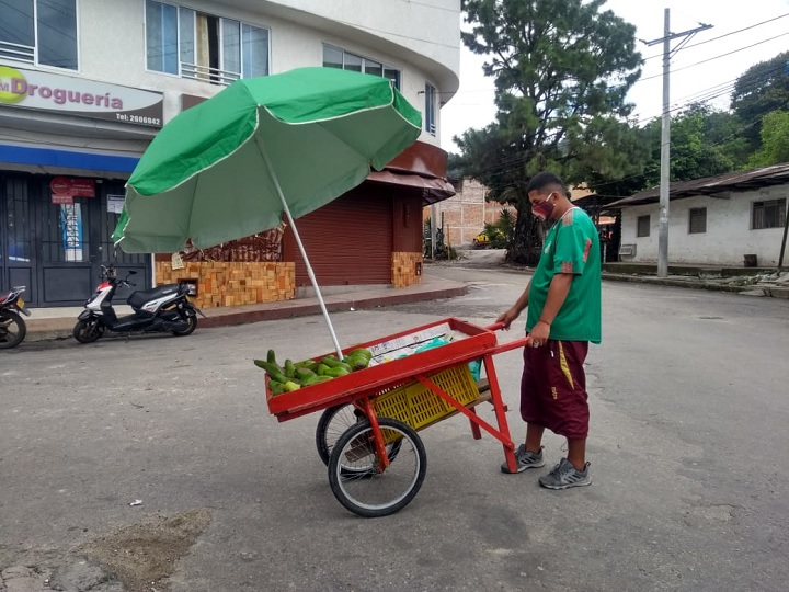 Uno de esos carretilleros es Brandon López, un adolescente de 17 años que, por motivo de la pandemia, se ha hecho cargo de su familia. Gracias a los productos agrícolas que vende en los barrios del sur de Ibagué, tiene con qué llevarle un plato de comida a sus padres y a su novia, una adolescente igual que él, quien tiene dos meses de embarazo.