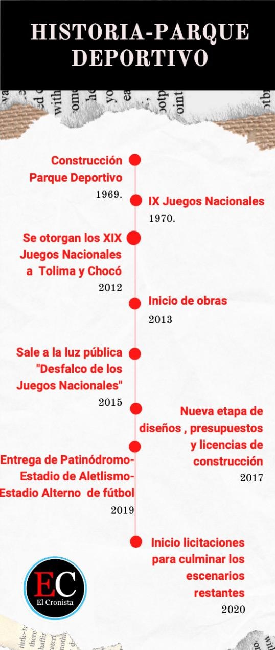 Un contrato por 42 mil millones de pesos fue destinado exclusivamente para dar cumplimiento a las obras que se adelantarían en El Parque Deportivo, pero como es de conocimiento público los Juegos Nacionales 2015 llegaron, pero las obras no lo hicieron y la imagen de los tolimenses ante el país quedó desdibujada.