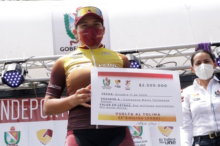 “Me tenía fe entre las diez primeras, pero quedé de 39” recuerda jocosamente María Ana. Sí, su posición en la clasificación general fue en el puesto 39 a 33 minutos de la ganadora, a pesar de ello, no fue motivo para irse con las manos vacias, $ 2.500.000 y el título a Campeona Mejor Tolimense Damas en la 23º Edición Vuelta al Tolima se fueron con ella a casa.