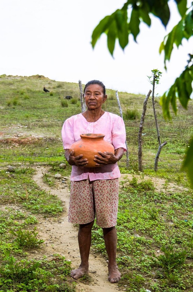 Desde niña, su abuelita Benita le enseñó a hacer artesanías. Con orgullo lo cuenta, mientras que masajea barro en una batea de madera. Con sus manos gruesas lo golpea de arriba hacia abajo para que este en su punto y empezar a moldearlo como jarrón.