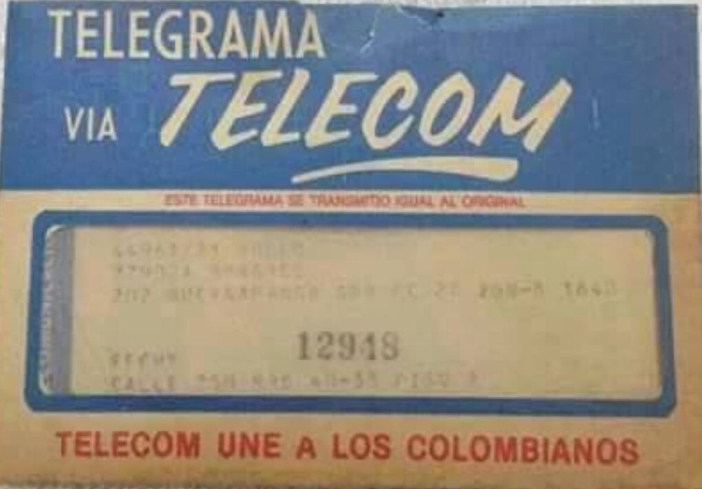 Desde ese momento en mi pueblo había algo que tenía encanto, y era que, cuando alguien recibía a Don René Sánchez Mora en la puerta de la casa llevando una carta o un telegrama de la empresa colombiana de comunicaciones Telecom, era toda una emoción. Era curioso ver una persona que recorría todo el casco urbano en una bicicleta llevando en sus manos una cantidad de sobres para entregar puerta a puerta en las viviendas. Llevaba una planilla, la cual les hacía firmar al que recibía, esto hacía que se despertara la curiosidad general. Sobre todo, porque siempre se tenía la confianza de que entre ese montón de sobres azules y blancos podía haber una con destinatario particular.