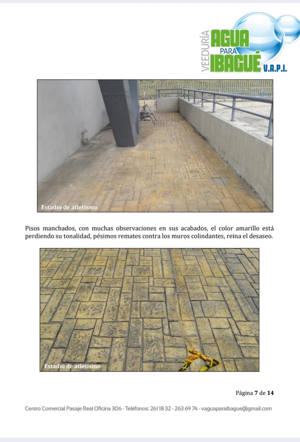 La Veeduría Agua Para Ibagué (Vapi) denunció ante la Contraloría General de la República el deterioro de los escenarios deportivos ubicados en el Parque Deportivo, que “fueron contratados, ejecutados y recibidos a entera satisfacción por las interventorías, supervisores de contratos de obras y de interventorías, durante la administración del exalcalde Guillermo Alfonso Jaramillo”, dice Vapi en carta enviada la CGR..