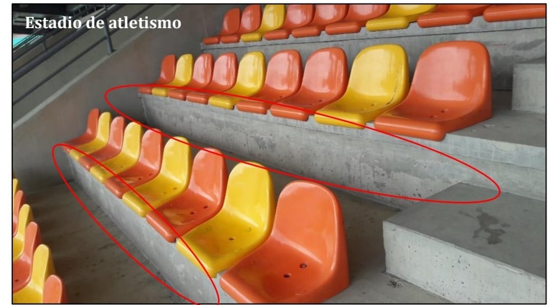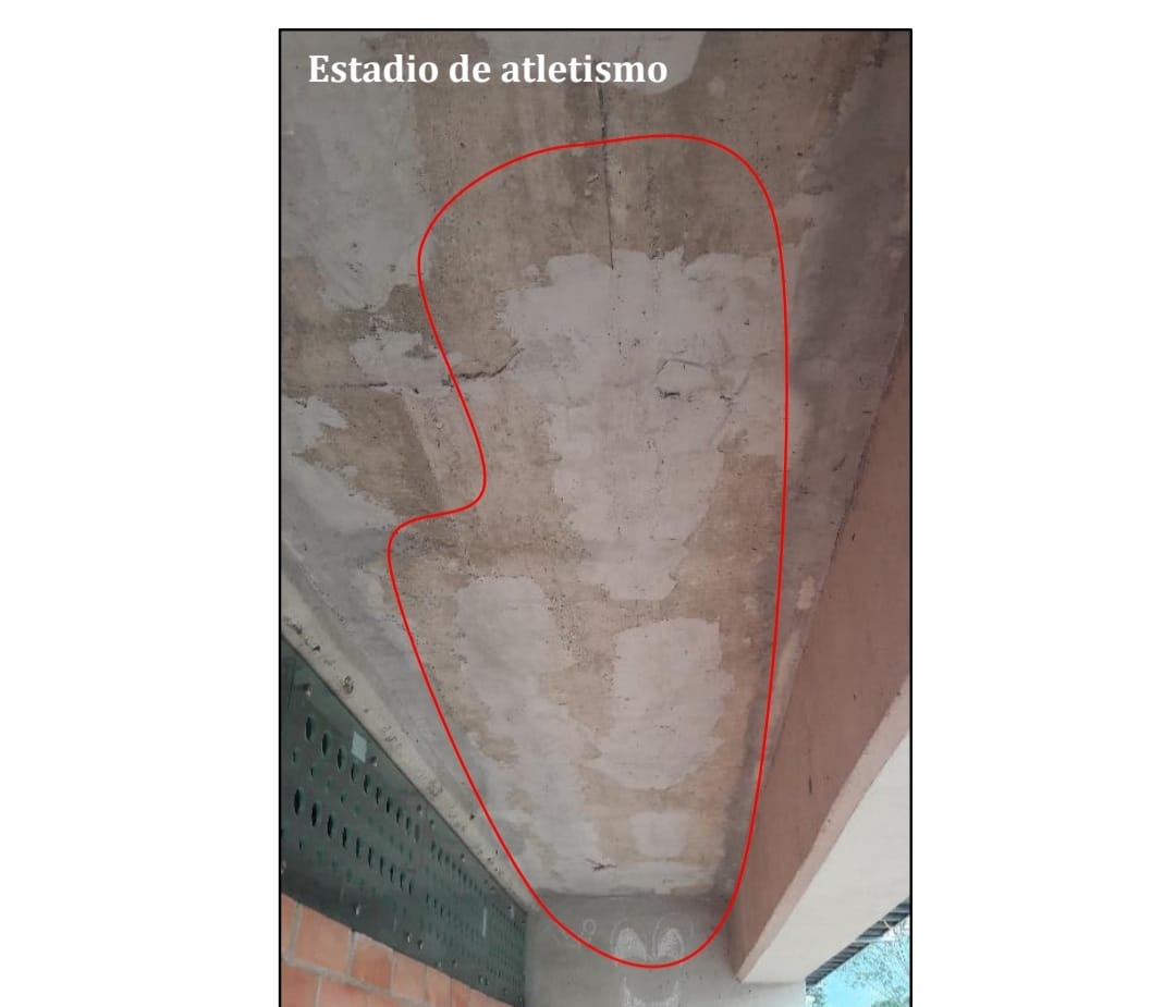 Entretanto, en el estadio de atletismo, también se habría aplicado masilla o estuco con el fin de aparentar concretos arquitectónicos. "Pretendieron meter gato por liebre", asegura Vapi..