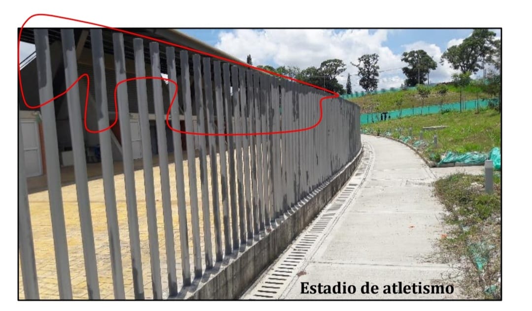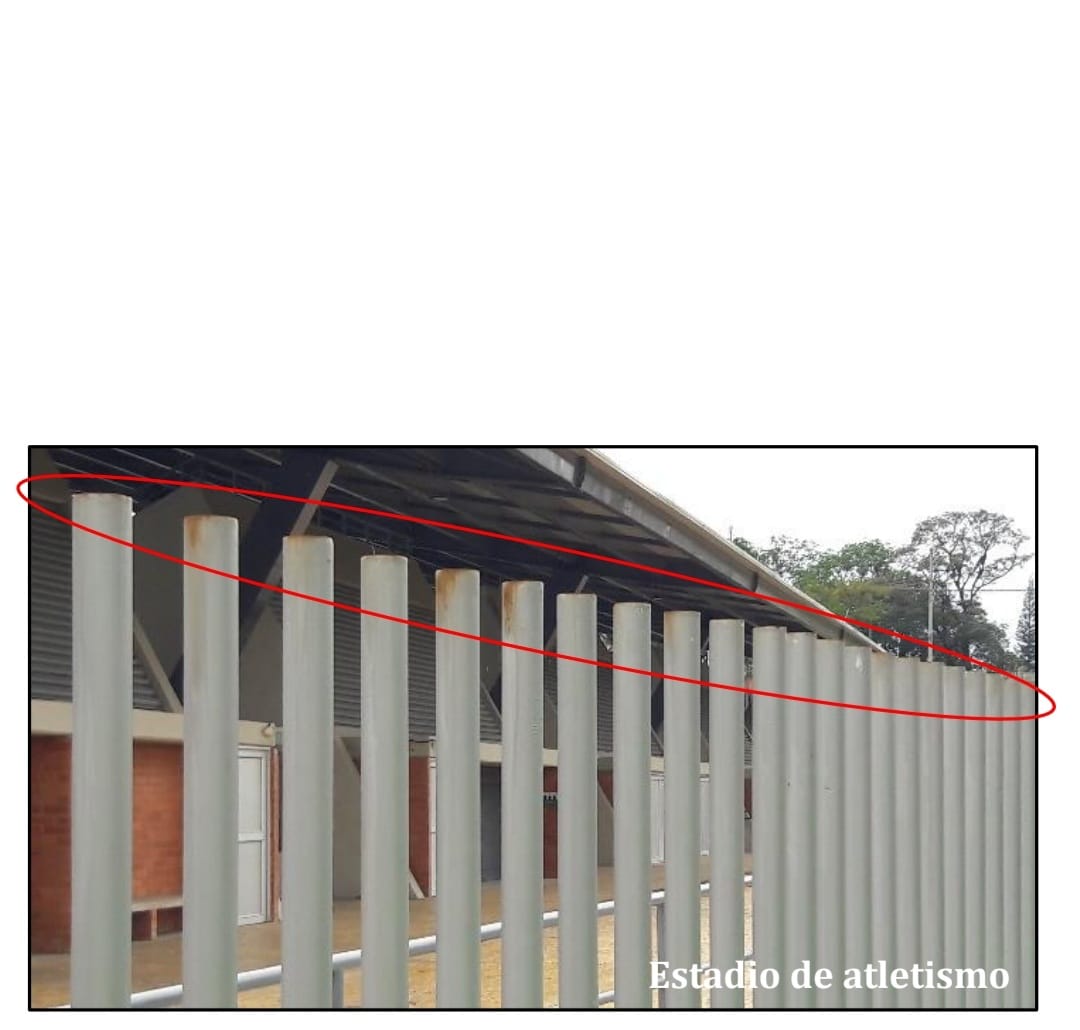 En las fotografías adjuntadas por Vapi se ve que los tubos del cerramiento del estadio de atletismo, presentan óxido. Los mismos debían ser de hierro galvanizado, sin embargo, según Vapi, este requerimiento no se cumplió.