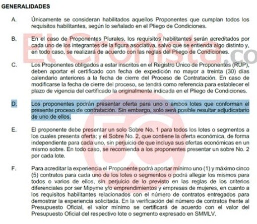 No obstante, el resultado final plantea interrogantes sobre la efectividad real del principio de pluralidad de oferentes y sobre si la división en dos lotes cumplió un propósito material o fue simplemente formal, en apariencia diseñada para garantizar equidad entre los proponentes.
