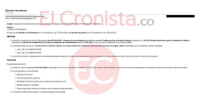 Imagen 8. Derecho de petición Curaduría de Ibagué 2.
