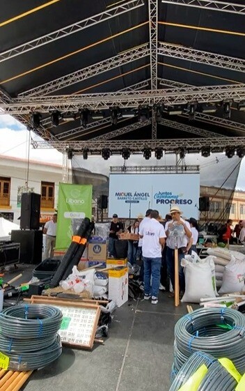 Como si fuera poco, durante la jornada les regalaron a los campesinos herramientas agrícolas e insumos, pero marcados con letreros alusivos a Miguel Barreto. En una de las imágenes compartidas por la misma Alcaldía de El Líbano en su cuenta oficial de Facebook, se ve que a una de las asistentes le entregaron una pala con un letrero que rezaba: "Senador Miguel".