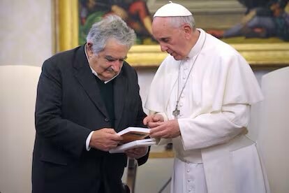 Imagen #3: El papa con Pepe Mujica. “Es un ejemplo para la política latinoamericana y mundial”, dijo Francisco después de la reunión.
