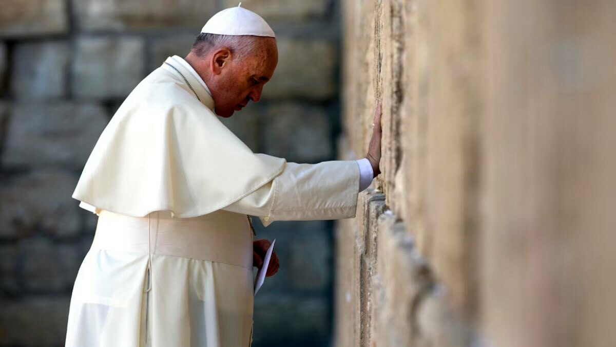 Imagen #12: El papa rezando en el Muro de los Lamentos. “La paz no se compra ni se vende”, dijo ese mismo día, y pidió que nadie utilice el nombre de Dios para justificar la violencia.