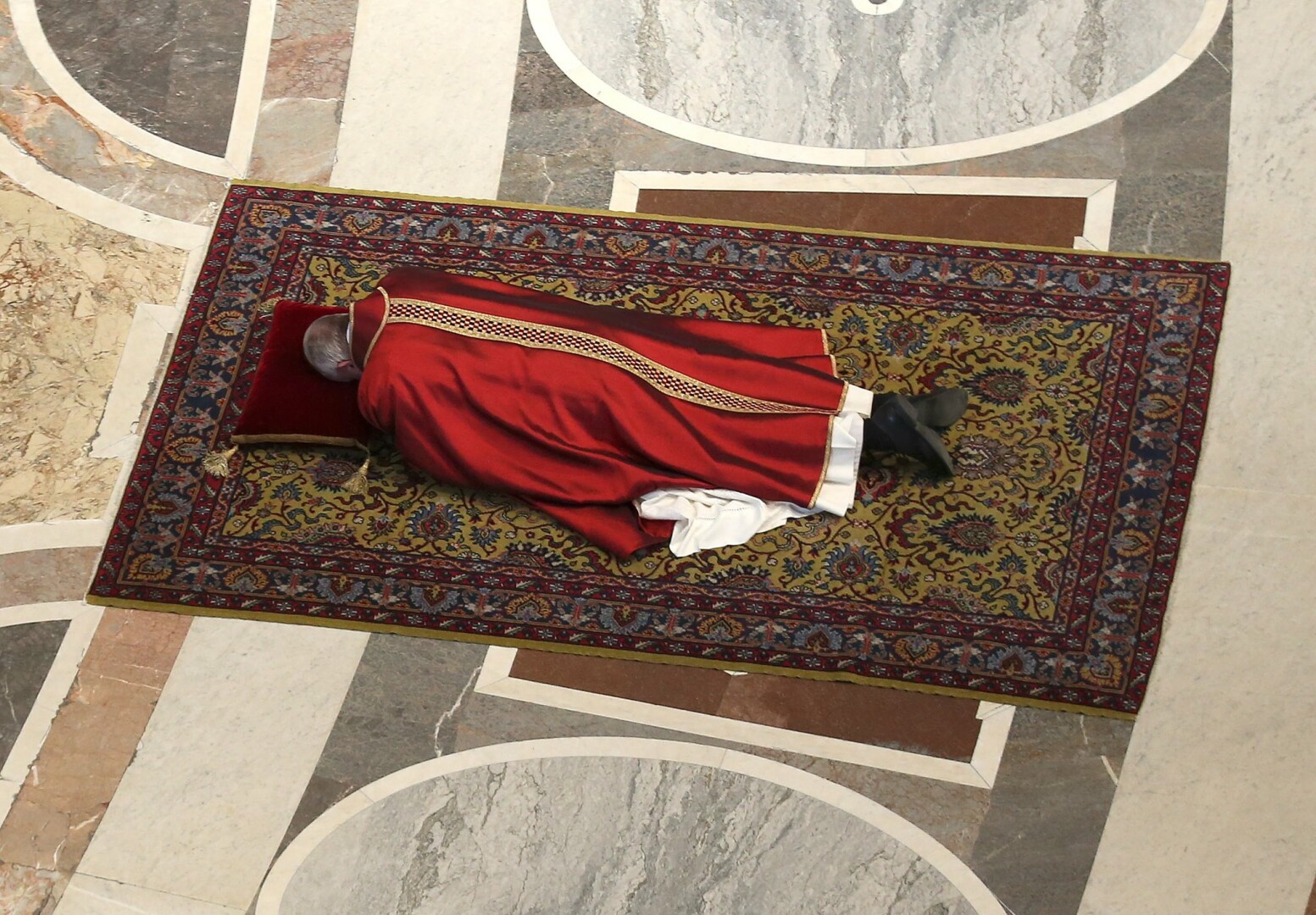 Imagen #10: En la Basílica de San Pedro, el papá se postró totalmente ante la santa cruz.