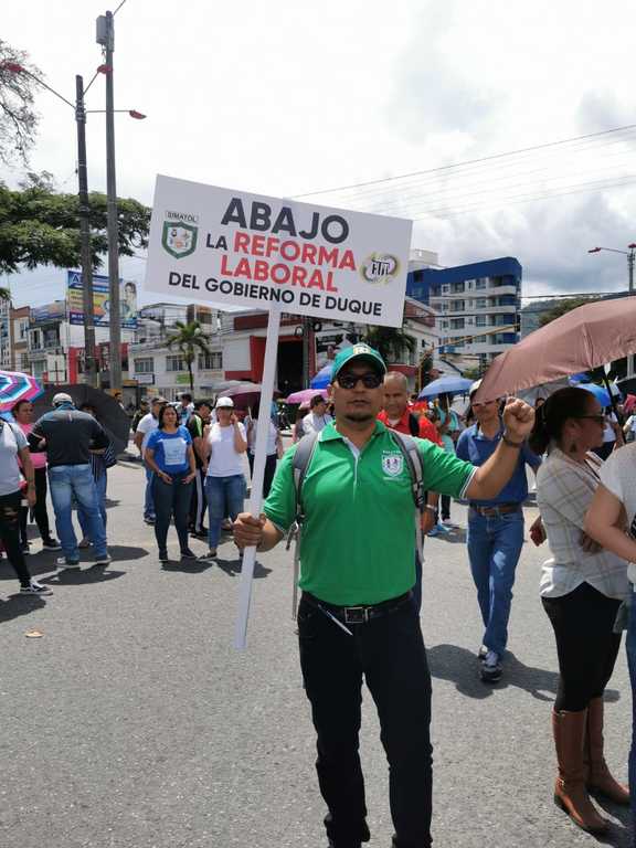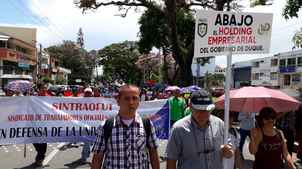 En la ciudad de Ibagué se concentró desde las nueve de la mañana de hoy jueves la marcha en contra de “El Paquetazo de Duque”, por las reformas que pretende hacer el gobierno, en el régimen pensional y laboral, bajo la figura llamada “Holding empresarial”.