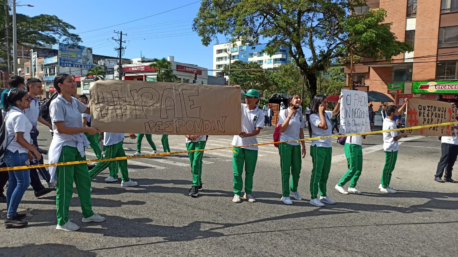 En la mañana de este martes 3 de abril un grupo de estudiantes seis colegios públicos de Ibagué se lanzaron a las calles para protestar por el mal servicio del Programa de Alimentación Escolar (PAE). A esta hora bloquean el paso de vehículos en la carrera Quinta con calle 37.