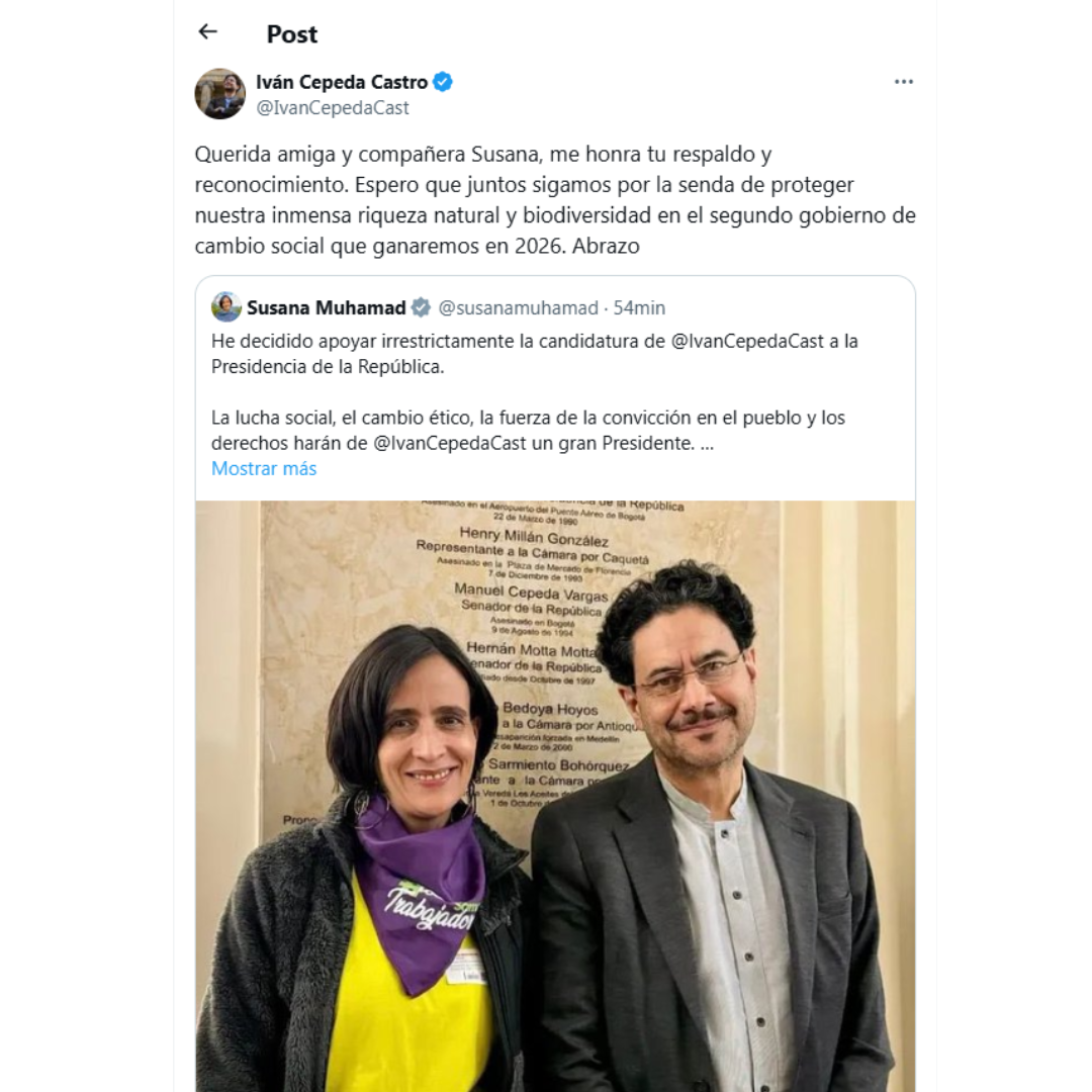 En un giro político que agita las aguas del progresismo colombiano, los exprecandidatos Susana Muhamad, Gustavo Bolívar y María José Pizarro anunciaron su declinación a la aspiración presidencial y su adhesión a la campaña de Iván Cepeda, consolidándolo como el candidato más fuerte dentro del Pacto Histórico.