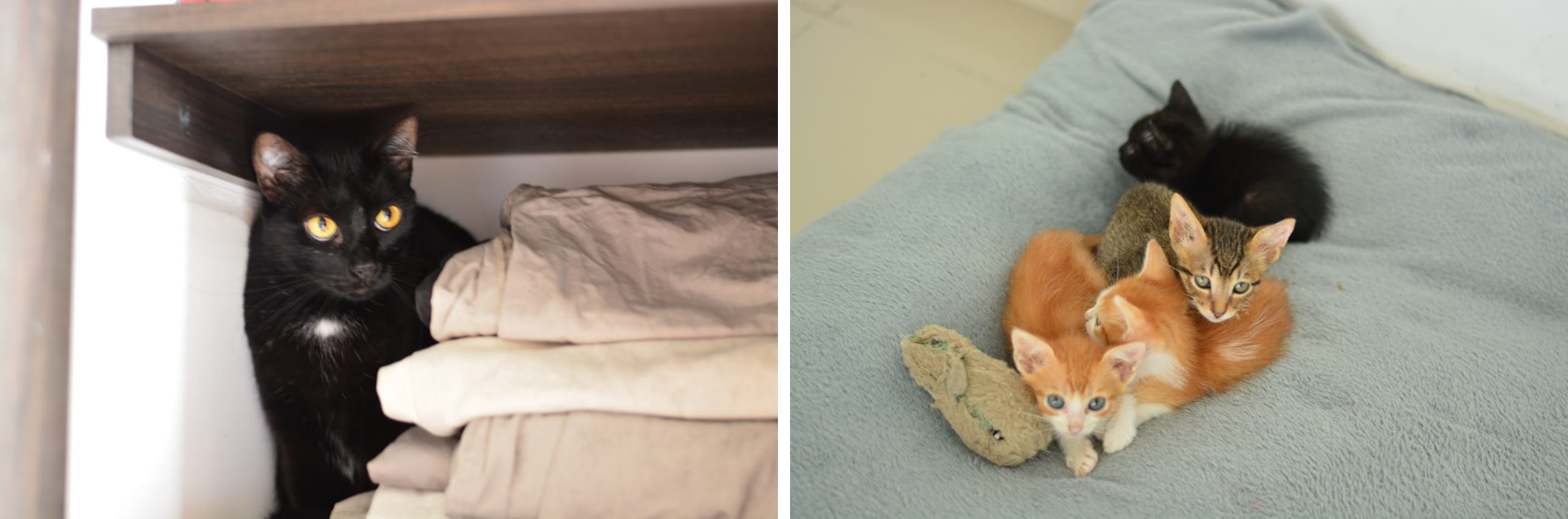 Ella es una ibaguereña que desde hace ocho años dedica todo su tiempo a rescatar y cuidar gatos abandonados, a quienes les brinda un hogar de paso, o, en ocasiones, se convierten en sus “hijos”  permanentes. “Recibo cualquier gato, no importa su condición. Los tengo hasta que alcanzan los dos meses más o menos, mientras se les hace el proceso de esterilización y desparasitación. Todos los bebés llegan en muy malas condiciones, porque vienen de las calles, de basureros, de las plazas de mercado; todos llegan con infecciones, con bacterias, heridas y más afectaciones. Los atiendo hasta que puedan iniciar un proceso de adopción”, cuenta Paola.