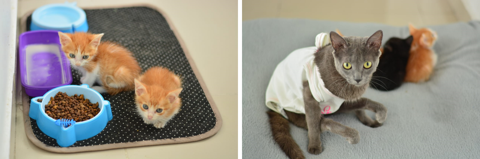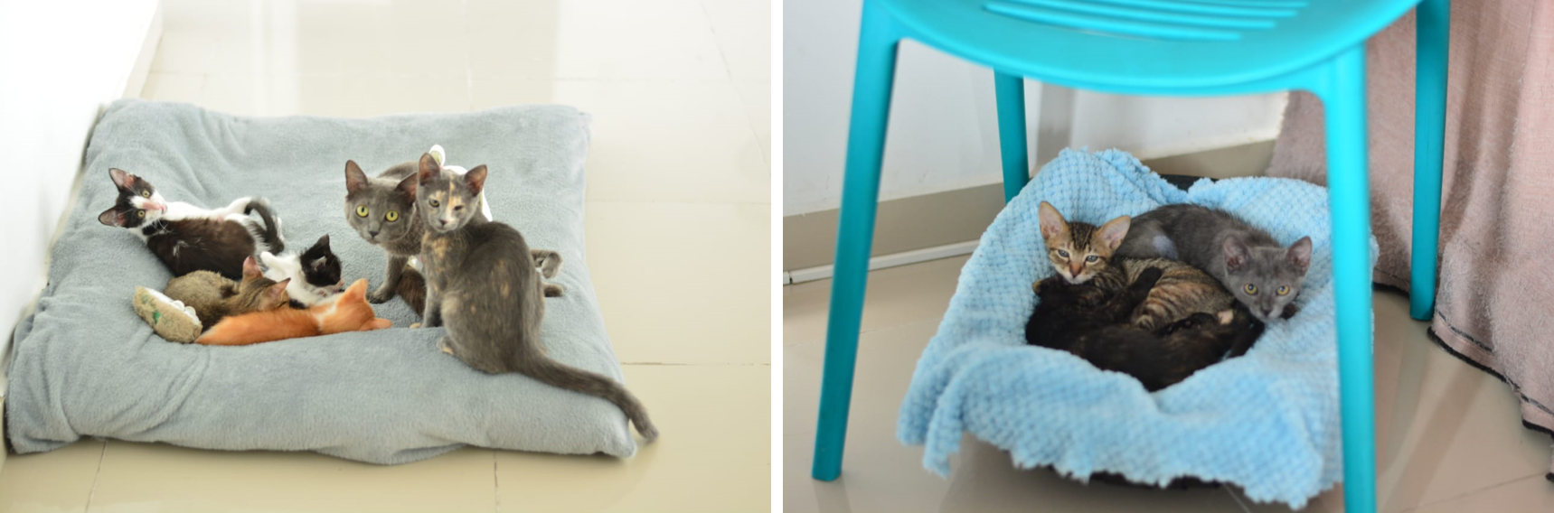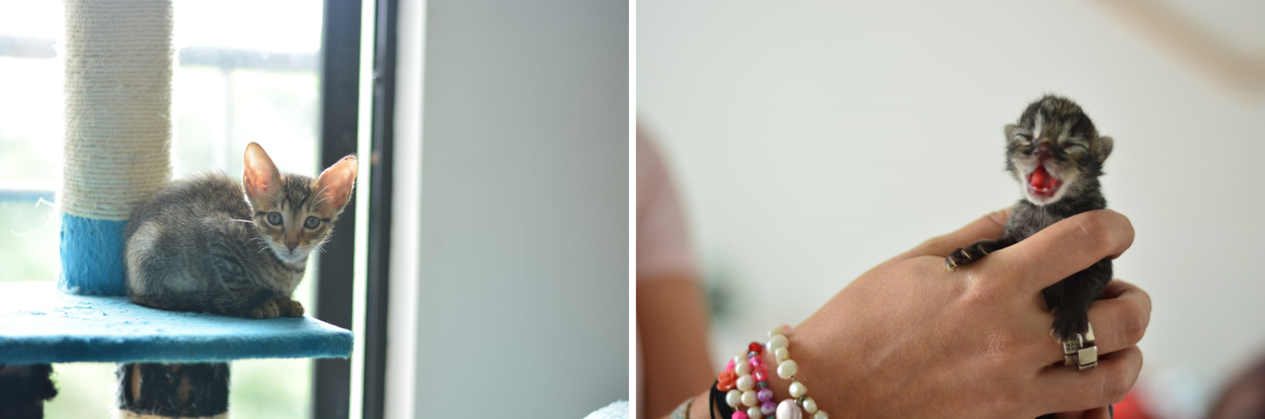 “Fue como una revelación. En mi casa tuve de todos los animales, menos gatos, porque a mi papá no le gustaban. Pero una vez cuando tenía como 20 años, cayó una gatita del tejado, así de la nada, y fue el primer contacto cercano con uno de ellos. Me tocó darle tetero, cuidarla, buscarle un hogar para darla en adopción. Ahí le perdí el miedo a la responsabilidad de cuidar un gatico rescatado de la calle y me nació la intención de hacer lo que hago ahora”, recuerda Paola.