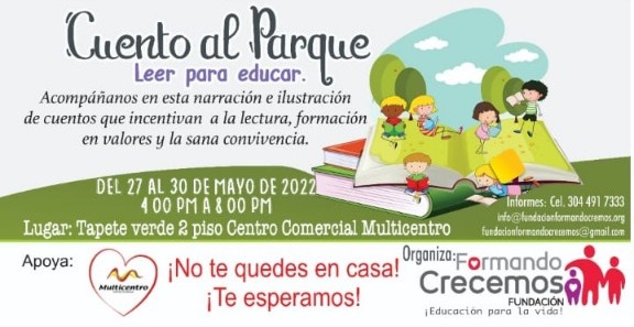El Proyecto Cuento al Parque "Leer para educar" lleva 4 años realizándose en la ciudad de Ibagué en los diferentes parques de la ciudad. Se trata de la apropiación de espacios abiertos como los diferentes parques de recreación que se ubican en los barrios y veredas de Ibagué.