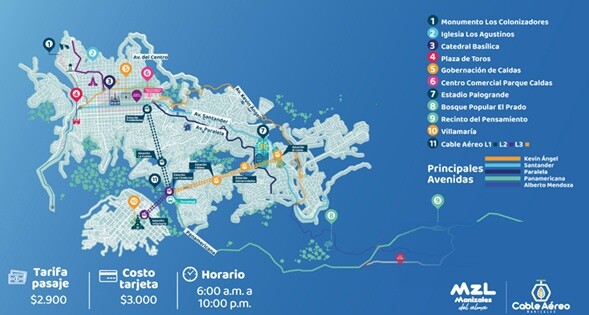 Mapa cable aéreo Manizales. Fuente: https://www.cableaereomanizales.gov.co/