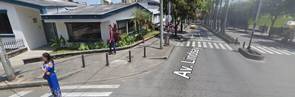 Estado de andenes, rampas y pasos peatonales , sector avenida Lindasay con cra 24 ; Manizales.Fuente: Google earth