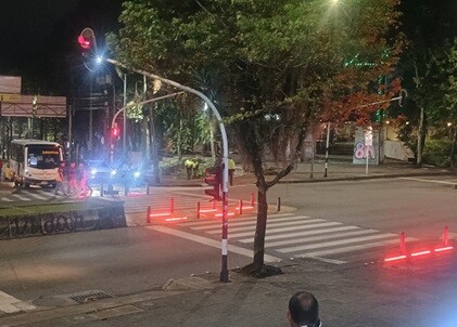 Ilumnación nocturnas en paso de cebra, sector el cable,Manizales . Fuente: Eduardo Peñaloza Kairuz